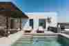 Sur la côte est de Mykonos, là où les falaises plongent dans les teintes saphir de la mer Égée, se dresse Cali Mykonos, un resort taillé dans la roche, construit dans le respect de la morphologie du terrain et de l'héritage cycladique. Pierre locale, marbre précieux, volumes blancs : une architecture qui ne cherche pas à attirer l'attention, mais qui la capte inévitablement.